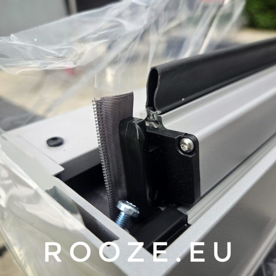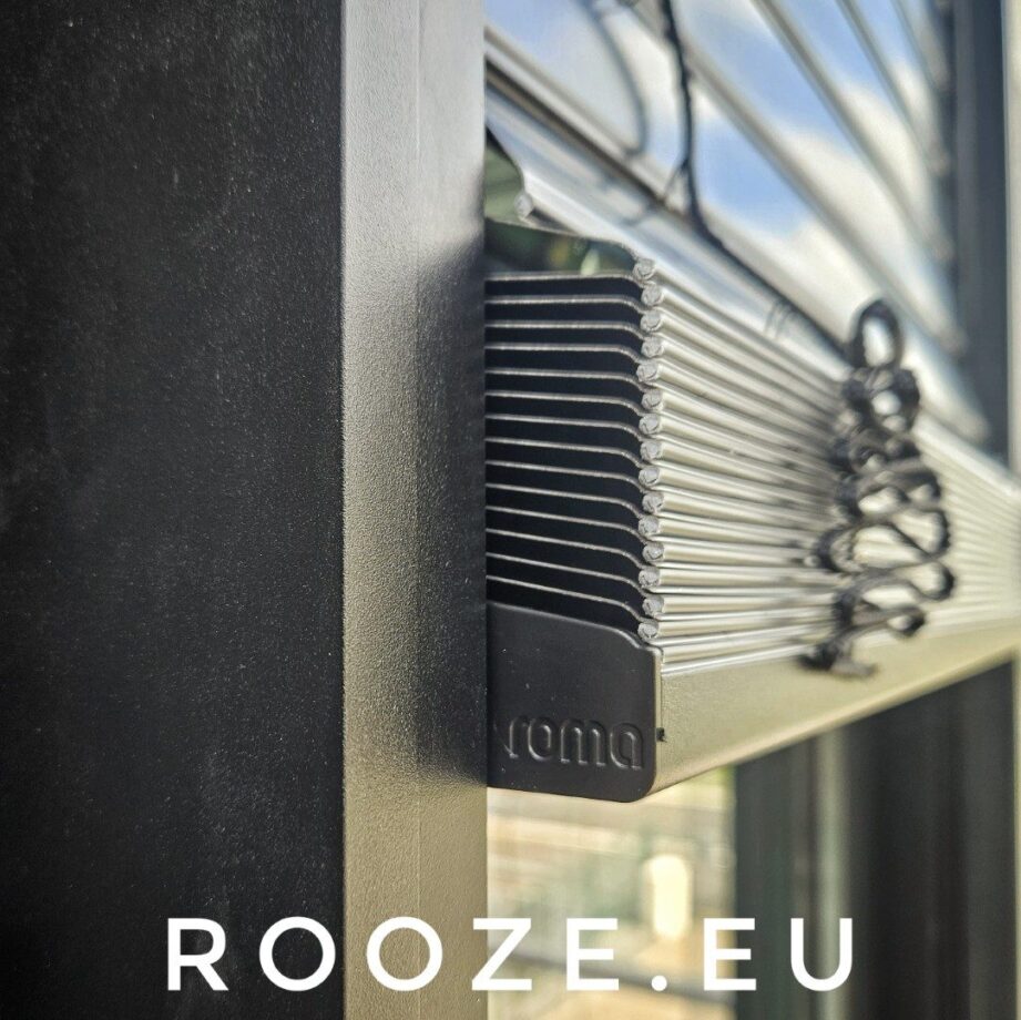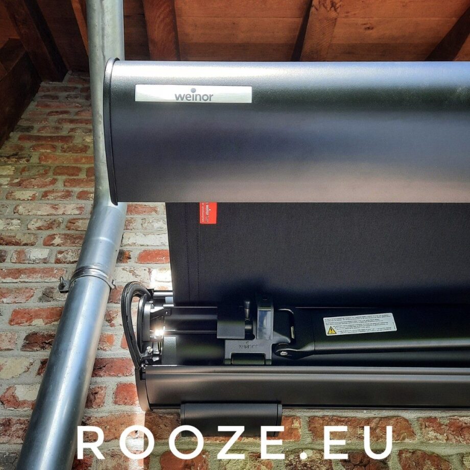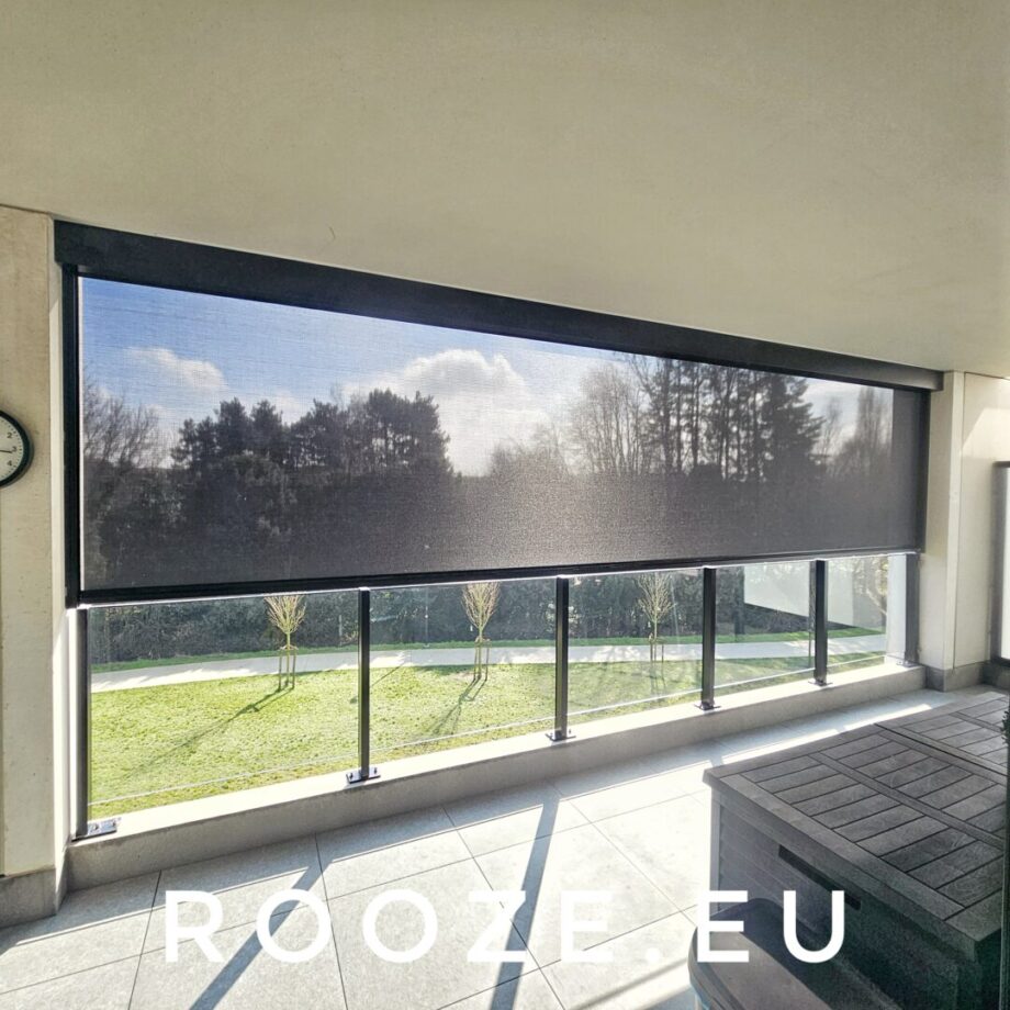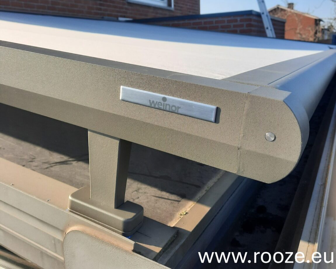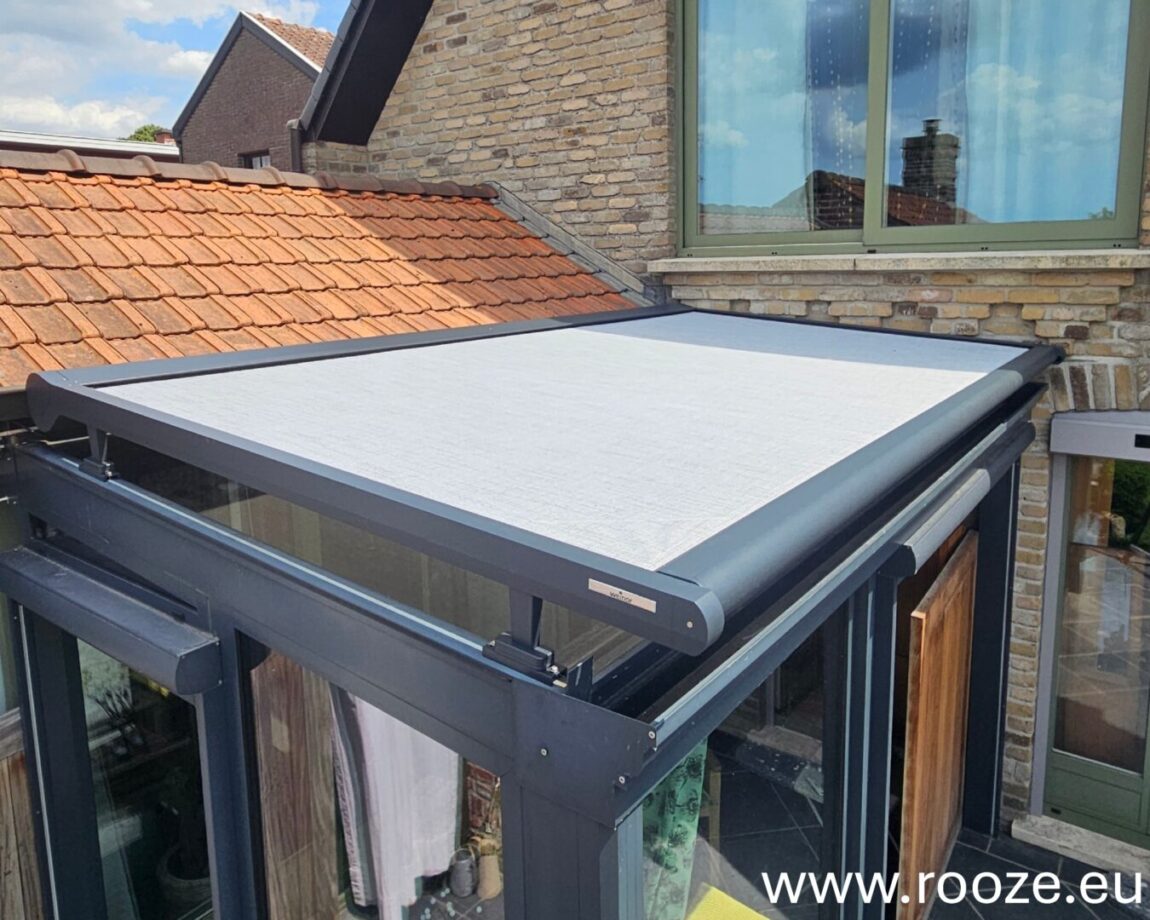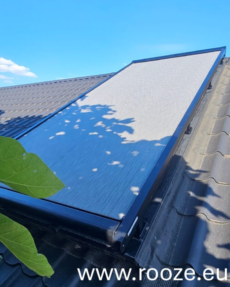 Extra: verduisterend doek + rubber in de onderlat en solar bediening