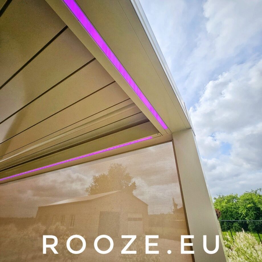 Ingebouwde screens WE7-214 linen-linen, en led verlichting in de goten + lamellen